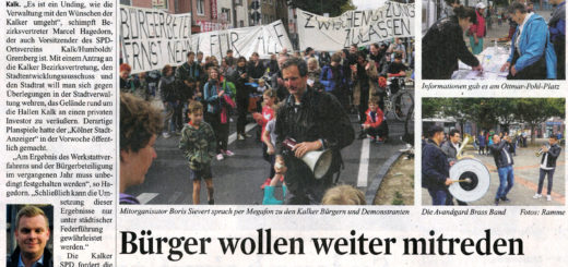 Gegen den jetzigen Standort des Junkiebundes an der Taunusstraße hat vor allem der Bürgerverein Humboldt-Gremberg immer wieder protestiert. Dessen Vorsitzende Helga Perschmann-Plättner ist auch Mitglied in der Bürgerstiftung „KalkGestalten“, die das Kunstprojekt gefördert und als sogenanntes „Leuchtturmprojekt“ besonders ausgezeichnet hat. Gudrun Kirch, Mitglied des Projektausschusses der Stiftung, bemerkte dazu, dass man diese Meinungsverschiedenheiten innerhalb der Stiftung sehr gut aushalten könne. „Die Entscheidung für das ausgezeichnete Projekt haben die Differenzen in keiner Wiese beeinflusst.“