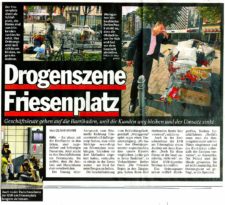 Laut Bericht des Express vom 26.08 2011 soll der Umzug der Arztpraxis vom Neumarkt Richtung Friesenplatz dafür gesorgt haben, das viele Süchtige neuerdings am Friesenplatz „rumhängen“.