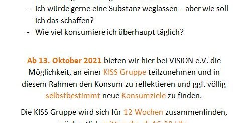 Die Erfahrungen aus vielen bundesweit angebotenen und durchgeführten KISS Gruppen zeigen, dass unter bestimmten Rahmenbedingungen ein kontrollierter Konsum psychoaktiver Substanzen für einige Menschen durchaus möglich ist. Dazu braucht es natürlich neben Selbstdisziplinin einen Rahmen der dem Leben eine möglichst stabile Struktur gibt.