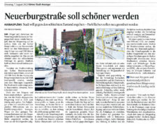 Doch den von Bürgern und Kommunalpolitikern gewünschten, von der Straße abgegrenzten Bürgersteig wird es wohl auch künftig nicht geben. Die Fußgänger sollen sich weiterhin auf dem gleichen Höhenniveau wie der Kraftfahrzeugverkehr bewegen. Wegen des eher geringen Verkehrsaufkommens soll die Neuerburgstraße in eine Mischverkehrs-fläche umgestaltet werden, die dann nur mit Schrittgeschwindigkeit befahren werden darf. Um den Fußgängern dennoch eine Orientierungshilfe zu bieten, plant die Verwaltung, an beiden Seiten einen rund 1,50 Meter breiten Streifen zu schaffen, an dem entlang die Abflussrinne geführt wird.