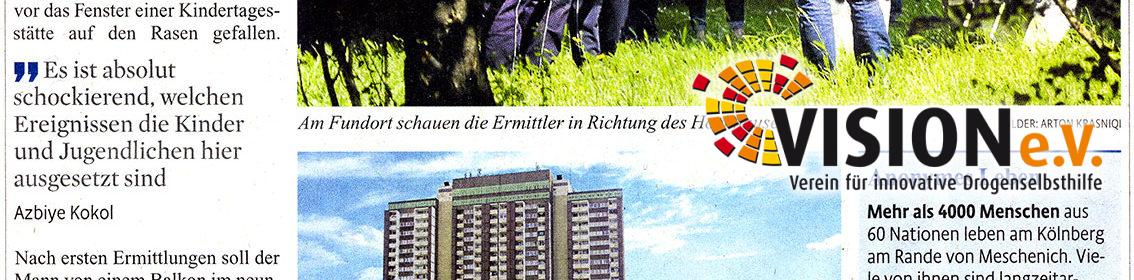 Mehr als 4000 Menschen aus 60 Nationen leben am Kölnberg am Rande von Meschenich. Viele von ihnen sind langzeitarbeitslos. In den bis zu 26 Etagen hohen Häusern der Hochhaussiedlung an den Straßen An der Fuhr und Alte Brühler Straße geht es anonym zu. Die grauen Wohnklötze wurden in den 1970er Jahren auf den Acker gebaut, der Kölnberg gilt als sozialer Brennpunkt, (hsr)