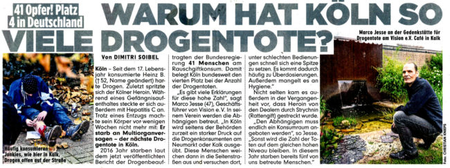 „Es gibt viele Erklärungen für diese hohe Zahl“, sagt Marco Jesse (47), Geschäftsführer von Vision e.V. In seinem Verein werden die Abhängigen betreut. „In Köln wird seitens der Behörden zurzeit ein starker Druck auf die Drogenkonsumenten am Neumarkt oder Kalk ausgeübt. Diese Menschen weichen dann in die Seitenstraßen aus und versuchen dort, sich unter schlechten Bedingungen schnell eine Spritze zu setzen. Es kommt dadurch häufig zu Überdosierungen. Außerdem mangelt es an Hygiene.“