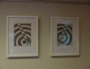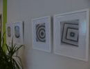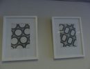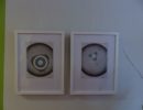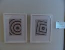 Die meisten der im Junkie-Bund-Café ausgestellten Bilder gehören zum Zyklus ungleiche Paare. Das Thema wird immer variiert, in Wirkklichkeit vier oder fünf Mal und ein Paar schafft es dann in die Ausstellung. Zwei Bilder gehören nicht zu diesem Zyklus. Es sind Arbeiten, die fast 20 Jahre als sind und noch nie in einer Ausstellung zu sehen waren. Die Technik ist grundsätzlich anders, besteht aus mehr oder weniger breiten Linien und Bändern. Die Aufgabe, dass das Bild an jeder Stelle gefallen muss, ist aber dieselbe.