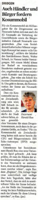 Auch Händler und Bürger fordern KonsummobilFür ein Konsummobil als Hilfsangebot für die Drogenszene am Neumarkt haben sich nun auch die IG Neumarkt als Vertretung der Geschäftsleute sowie die Bürgerinitiative Zukunft Neumarkt ausgesprochen. „Das vom Sozialdienst Katholischer Männer vorgelegte Konzept hat unsere volle Unterstützung“, erklärte der Inhaber des Sanitätshauses Stortz, Walter Schuch, im Namen beider Vereinigungen. Mit einem Mobil könne der Bedarf an verschiedenen Standorten stadtweit getestet werden, angebunden an schon existie-‚ rende Kontakt- und Beratungsangebote. „Das wäre ein Schritt hin zu einer Dezentralisierung der Hilfe. Uns geht es darum, die Konzentration der Szene am Neumarkt aufzulösen.“