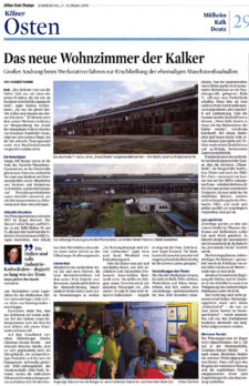 Die Idee der Stadtplaner ist nun, die östliche Halle 70 für Ateliers, Werkstätten und Büros herzurichten und dort zudem eine Ausstellungs- und Konzerthalle für etwa 2000 Besucher einzuplanen. Aus der angrenzenden, und in Richtung der noch zu bauenden Wohnhäuser an der Neuerburgstraße gelegenen Halle 71, will man eine Freilufthalle schaffen. Diese Idee sei zwar noch nicht mit dem Stadtkonservator abgestimmt, aber man hoffe auf Zustimmung, Teile der Fassade und des Dachs öffnen zu können. „Diese Halle könnte so etwas wie das Wohnzimmer der Kalker werden“, schwärmte Bernhardt. Mit einem Marktplatz und einem Boule-Feld, einem kleinen Sportplatz mit Tribüne sowie einem Gewächshaus und großzügig bemessenem Gastronomiebetrieb.
