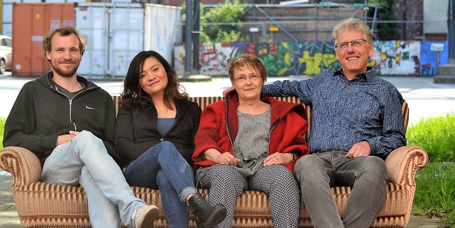 Sie sind sauer, aber trotzdem noch zuversichtlich: Jonas Linnebank vom Vorstand des Kuns e.V., Elizaveta Khan vom Integrationshaus, Irmhild Engels und Sascha Gajewski (v.l.) vom Stadtraum 4+5 haben einen offenen Brief an Politik und Verwaltung verfasst. (Foto: Wächter)