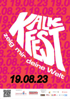 Das Kalkfest findet dieses Jahr zum ersten Mal dezentral statt. Unter dem Motto ‚Zeig mir deine Welt‘ wird der Stadtteil an seinen verschiedenen spannenden und interessanten Orten erfahrbar und erlebbar. Die Festzentrale, der sogenannte Stadtstrand wird auf dem Platz an der Kalk Post realisiert. Dort werden wir zeigen, welche Aufenthaltsqualität ein betonierter Platz haben könnte, wenn Menschen auf Sitzsäcken und Liegestühlen in der Sonne bei entspannter Musik relaxen und Stadtstrandatmosphäre genießen. An vielen weiteren zahlreichen Orten, wird es ab 14 Uhr Spielaktionen, Führungen, Lesungen, Musik, Konzerte, Kunstaktionen und vieles mehr geben, um zu erleben welche aufregenden Orte Kalk zu bieten hat. Das Abschlusskonzert ist auf dem Osthof der Hallen Kalk geplant. Alle Aktionsorte werden auf einer Karte gebündelt.