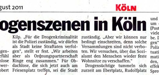 Köln – Weniger Vertreibung durch städtische Ordnungshüter, mehr Hilfe durch Streetworker. Das fordert das Selbsthilfe-Netzwerk für die Drogenabhängigen in der Stadt. Am Wochenende erinnerte die Gruppe auf einer Kundgebung an die 69 Drogentote des...