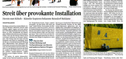 Streit über provokante Installation Heroin statt Kölsch – Künstler kopieren bekannte Reissdorf-Reklame VON BETTINAJANECEK Ein Mann und eine Frau trinken Kölsch. Immer im Wechsel, öffentlich und für jeden sichtbar, tagein, tagaus und auch nachts....