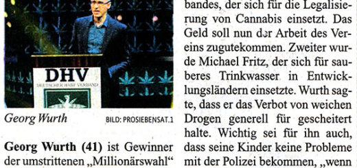 Georg Wurth (41) ist Gewinner der umstrittenen „Millionärswahl“ von ProSieben/Sat.1. Mit Wurth gewann nicht einer der üblichen Casting-Kandidaten, etwa ein Sänger, Tänzer oder Akrobat, sondern der Chef des Deutschen Hanf Verbandes, der sich für...