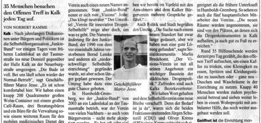 Neue Räume für den „Junkie-Bund“ an der Neuerburgstraße 35 Menschen besuchen den Offenen Treff in Kalk jeden Tag auf. VON NORBERT RAMME Kalk – Nach jahrelangen Diskussionen unter Bürgern und Politikern ist die Selbsthilfeorganisation...