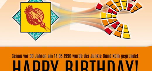 30-jähriges Jubiläum – wir laden ein zum Sektempfang Am 13.08.1990 wurde der Junkie Bund Köln in das Vereinsregister eingetragen und besteht nun seit 30 Jahren. Dieses Jubiläum möchten wir gemeinsam mit euch feiern. Im...