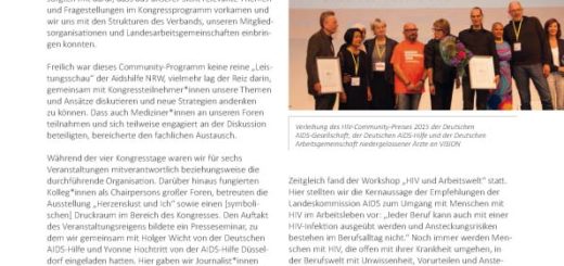 WISSENschafftZUKUNFT Unter diesem Motto fand im Juni 2015 in Düsseldorf der 7. Deutsch-Österreichische AIDS-Kongress statt. Zuletzt hatte in Nordrhein-Westfalen eine solch große und im deutschen Sprachraum wichtige Tagung 1999 in Essen stattgefunden, damals noch...