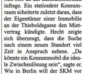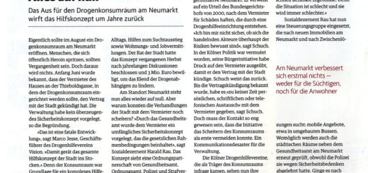 Alles auf null Das Aus für den Drogenkonsumräum am Neumarkt wirft das Hilfskonzept um Jahre zurück Eigentlich sollte im August ein Drogenkonsumräum am Neumarkt eröffnen. Menschen, die sich öffentlich Heroin spritzen, sollten Vergangenheit sein....