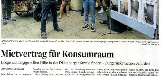 Heute war der WDR bei uns zu Besuch – „Aktuelle Stunde“ zum Thema „lösungsorientierter Umgang mit Drogengebrauchenden in Innenstädten in NRW“. Ausgestrahlt wird der Bericht jetzt Samstag oder Sonntag.