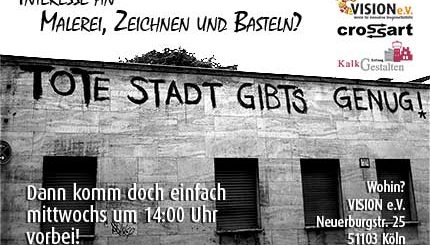 Kunstprojekt für und mit Drogen gebrauchenden Menschen in den Räumen von VISION e.V. Köln Im März 2011 fiel der Startschuss für das Kunstprojekt „Kunst im sozialen Raum“, das gemeinsam vom Drogenselbsthilfeverein VISION e.V. Köln...