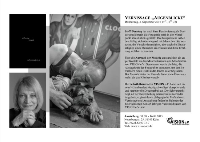 STEFFI SONNTAG PORTRÄTS 22. Juni – 28. Juli 2016 Steffi Sonntag begleitet seit Jahren drogengebrauchende und substituierte Frauen und Männer in Köln mit der Kamera auf der Straße und Zuhause. Ihre Bilder vermitteln einen...