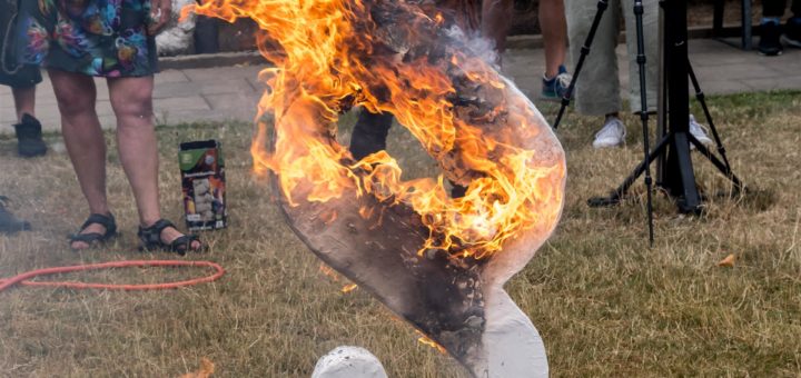 In Form eines Paragraphen-Symbols wird symbolisch durch die Verbrennung die Abschaffung des Betäubungsmittelgesetzes in der heutigen Form gefordert. Dies war der letzte Programmpunkt und ein effektvoller Ausklang des Internationalen Gedenktags für verstorbene Drogengebrauchende am...