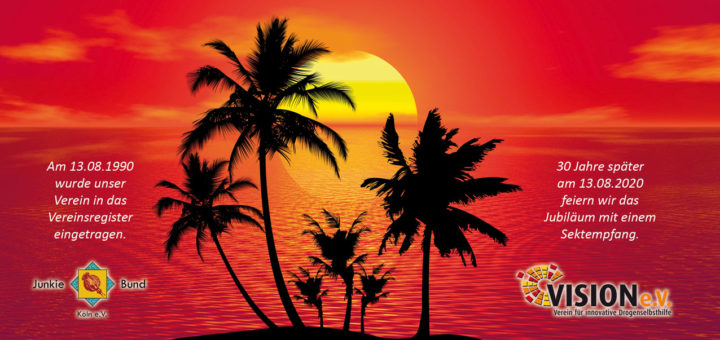 30-jähriges Jubiläum – wir laden ein zum Sektempfang Am 13.08.1990 wurde der Junkie Bund Köln in das Vereinsregister eingetragen und besteht nun seit 30 Jahren. Dieses Jubiläum möchten wir gemeinsam mit euch feiern. Im...
