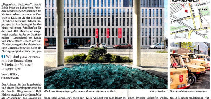 Markstein für die Malteser Einweihung Katholische Hilfsorganisation zieht mit rund 400 Mitarbeitern in ein neues Bürogebäude am Deutzer Feld VON CLEMENS SCHMINKE „Unglaublich funktional“, nannte Erich Prinz zu Lobkowicz, Präsident der deutschen Assoziation des...