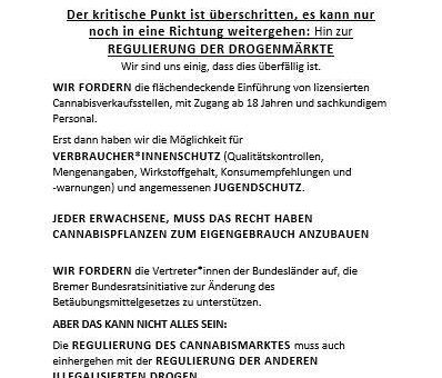 Wir fordern die flächendeckende Einführung von lizensierten Cannabisverkaufsstellen, mit Zugang ab 18 Jahren und sachkundigem Personal. Damit wird Jugend- und Verbraucherschutz erst möglich! Zudem fordern wir das Recht auf Eigenanbau. Des Weiteren fordern wir...