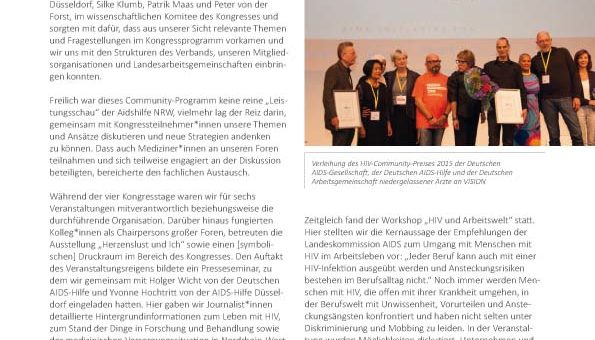 WISSENschafftZUKUNFT Unter diesem Motto fand im Juni 2015 in Düsseldorf der 7. Deutsch-Österreichische AIDS-Kongress statt. Zuletzt hatte in Nordrhein-Westfalen eine solch große und im deutschen Sprachraum wichtige Tagung 1999 in Essen stattgefunden, damals noch...