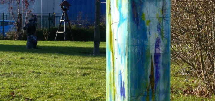 neue Skulptur „Kubus Türkis/blau“ Künstlerin: Christine Pohl (www.cp-malerei.de) Material: Acrylglas (Stärke: 5 mm), Acrylfarbe Herstellungsjahr: 2016