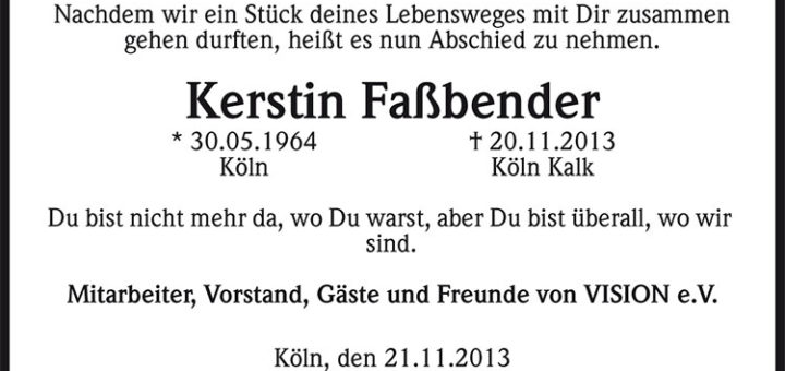 Mit Kerstin verlieren wir eine weitere Kalker Drogengebraucherin, die VISION noch aus den Tagen des Junkie Bund kannte. Wir kannten sie in vielen unterschiedlichen Phasen ihres Lebens- und Konsumweges. Wir werden dich vermissen !