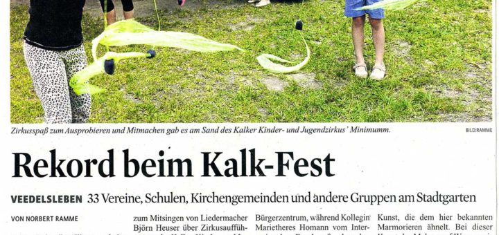 Veedelsleben 33 Vereine, Schulen, Kirchengemeinden und ändere Gruppen am Stadtgarten VON NORBERT RAMME Kalk. Rekordbeteiligung beim Kalk-Fest: 33 Vereine und Institutionen, Schulen und Kirchengemeinden hatten im Kalker, Stadtgarten ihre Stände aufgebaut – mit Informationen...