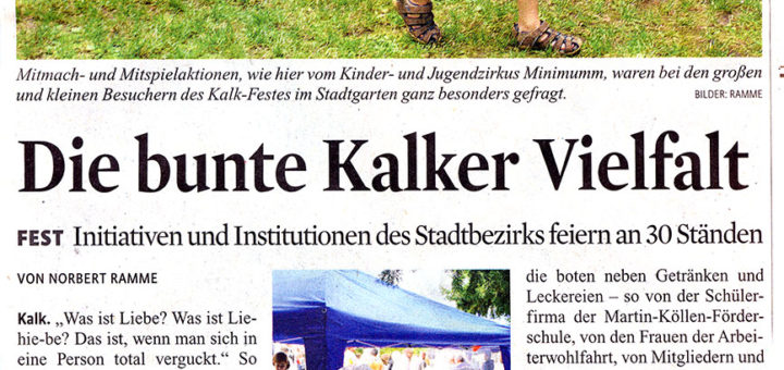 Sa., 30.6. – 14-18 Uhr Der Arbeitskreis Kalk, ein Zusammenschluss von Einrichtungen, Trägern, Vereinen, und Schulen, lädt ein und präsentiert unter dem Motto „Kalk ist bunt“ ein abwechslungsreiches Bühnenprogramm sowie viele attraktive Mitmachaktionen für...