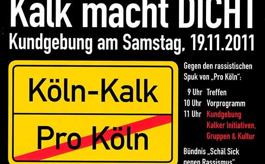 Kundgebung am Samstag, 19.11.2011 gegen den rassistischen Spuk von „Pro Köln“ „Pro Köln“ will am 19. November durch Köln-Kalk marschieren und will einen weiteren Stadtteil nur aufmischen, ohne sich um die wirklichen sozialen und...