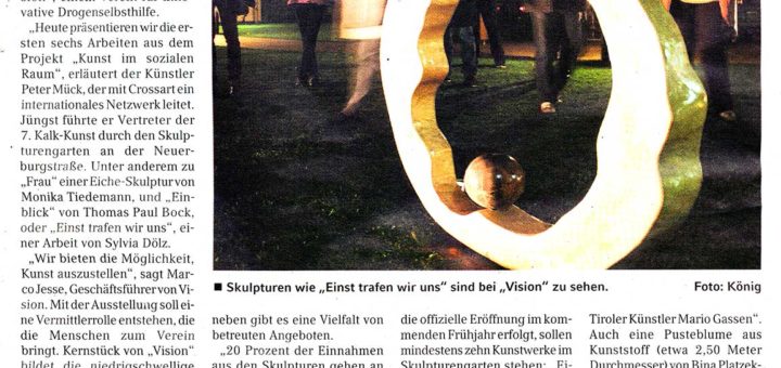 20 Prozent der Erlöse kommen dem Verein Vision e.V. zugute Kalk (kg). Es hat schon etwas besonderes, wenn Skulpturen am Abend angeleuchtet werden. Das Licht der Strahler verleiht ihnen eine besondere Kraft und verbindet...