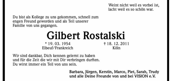 Am Sonntag, den 18.12.2011 hat unser aller Freund Gilbert leider den Kampf gegen den Krebs verloren. Was bleibt, ist eine Lücke die nicht zu schließen ist. Was bleibt ist aber auch die Erinnerung an...