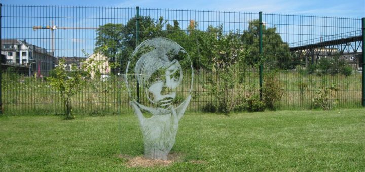 „Tribute to MC“ Künstler: Peter Mück Abmessungen: 70 x 110 cm Technik: Scratching auf Glas Herstellungsjahr: 2008