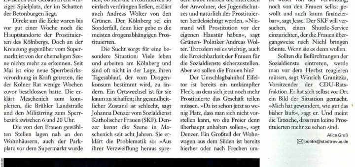 Aufregung in der Szene: Die Ausweitung des Sperrbezirks in Meschenich verdrängt die Prostituierten Jeder, der schon mal mit der Bahn von Köln nach Bonn gefahren ist, kennt den stufenförmigen, braungerandeten Hochhauskomplex Kölnberg. An diesem...